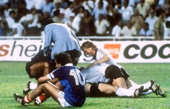 A partida imortalizada como ‘A Noite de Sevilha’ colocou frente a frente França e Alemanha Ocidental na semifinal do Mundial de 1982. A Alemanha saiu na frente com um gol de Littbarski, mas Platini empatou de pênalti. O momento mais lembrado ocorreu quando Schumacher atingiu Battiston, deixando-o inconsciente e gravemente lesionado, sem receber punição.