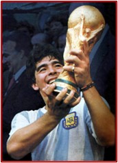 No México 1986, ele alcançou o auge de sua carreira. Foi capitão, líder e figura absoluta do campeão, com 5 gols e 5 assistências em 7 jogos. Sua atuação contra a Inglaterra nas quartas de final, com o memorável ‘Gol do Século’ e a ‘Mão de Deus’, ficou gravada na história para sempre. Na final contra a Alemanha (3 a 2), comandou a vitória com uma assistência decisiva para Jorge Burruchaga.